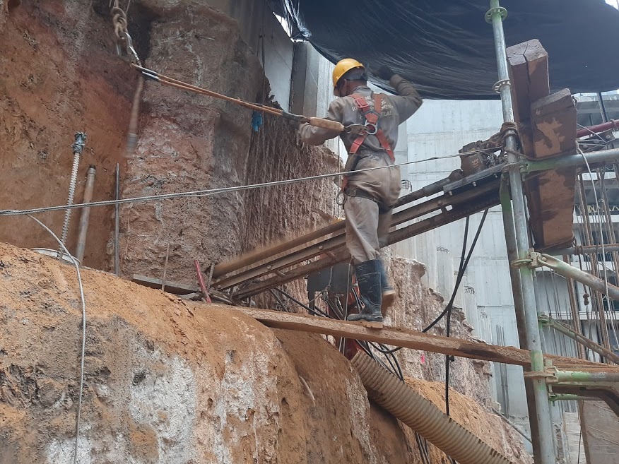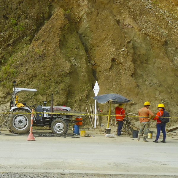 Contamos con la tecnología para realizar la perforación e instalación de anclajes capaces de transmitir la carga de tensión de una superficie a un soporte en profundidad ya sea de manera pasiva en sitios de alta probabilidad de deslizamiento y formaciones erosivas o de forma activa con cables de acero de alta resistencia tensionado