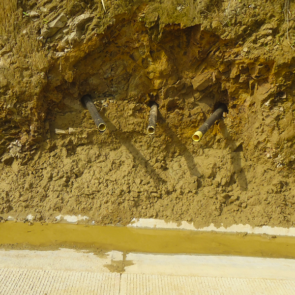 El objetivo de los drenes horizontales es disminuir la presión o rebajar el nivel freático de un talud o una pared natural utilizando perforaciones que por lo general tienen un diámetro de 3,5″ encamisadas a 2″ con una longitud de alrededor de 30 metros, en las que se coloca tubería de PVC perforada y recubierta con geotextil, este proceso minimiza notablemente el riesgo de futuros deslizamientos, GEOPERFORACIONES Y SERVICIOS LTDA cuenta con la experiencia y maquinaria necesaria para realizar este método de perforación con un elevado estándar de calidad